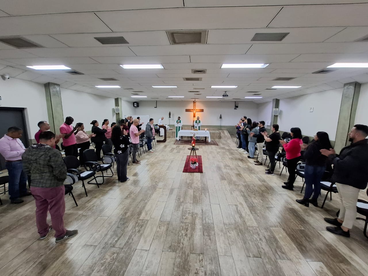 O Pe. Cleiton também agradeceu a todos os colaboradores do Santuário, e em seguida, todos seguiram para o Café da manhã, no mesmo Salão Dehon onde aconteceu a celebração.