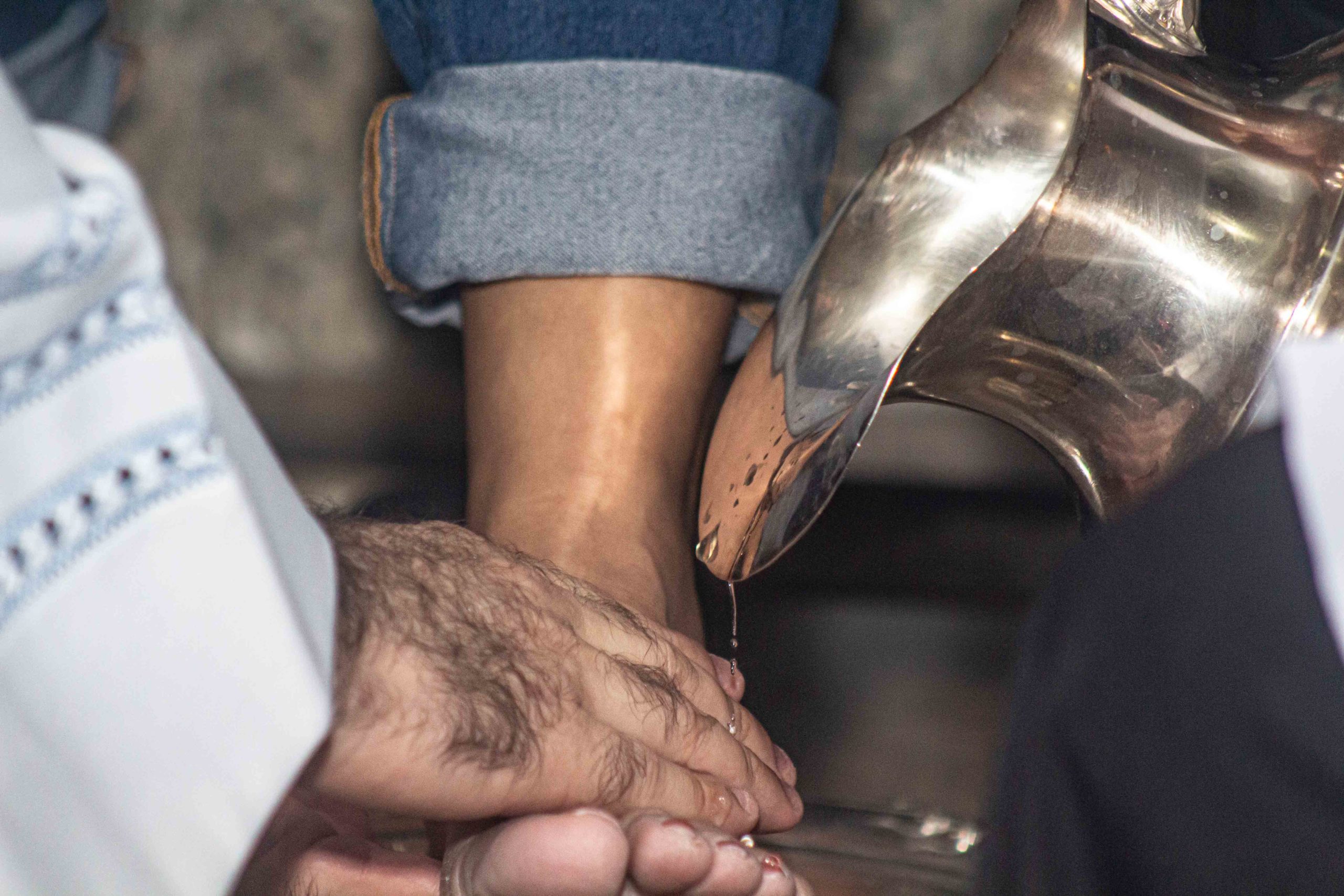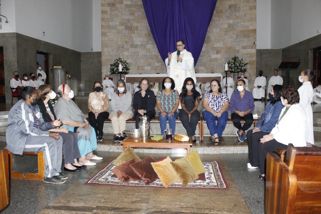 O pároco e reitor em seguida, ao som de um canto, realizou a cerimônia do Lava-pés em 12 membros da comunidade, que são educadoras, recordando a Campanha da Fraternidade 2022, com o tema “Fraternidade e Educação” e lema “Fala com sabedoria, ensina com amor” (cf. Pr 31,26). Após a celebração, seguiu-se para a igreja antiga, o cortejo do presidente da celebração, alguns ministros extraordinários da Eucaristia e fiéis, para a Vigília Eucarística, prevista para ocorrer até às 24h.