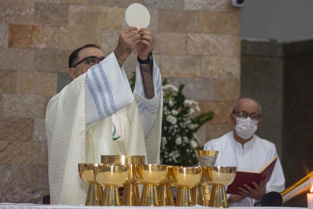 Na saudação inicial, Pe. Daniel disse que algo importante nos reúne hoje, pois vamos celebrar, valorizar, nos alegrar pela presença de Jesus na Eucaristia e os demais Sacramentos da Igreja. Pedimos perdão pelas vezes que não nos preparamos bem para participar da Ceia do Senhor. Na homilia, Pe. Daniel exorta a exaltarmos o valor da Eucaristia, dizendo: “O Senhor quis se fazer presença em nosso meio, como alimento. No Natal celebramos que Deus nasce. No Sábado Santo à noite e no Domingo, vamos lembrar a Ressurreição de Jesus, a Páscoa.