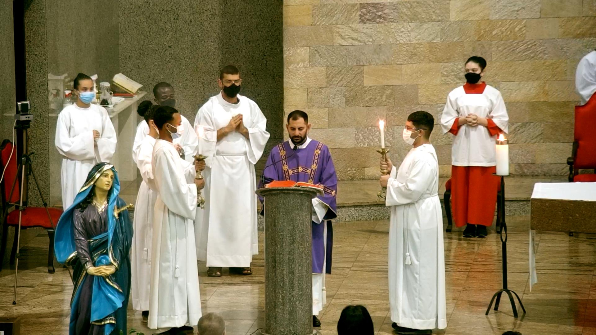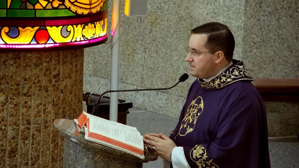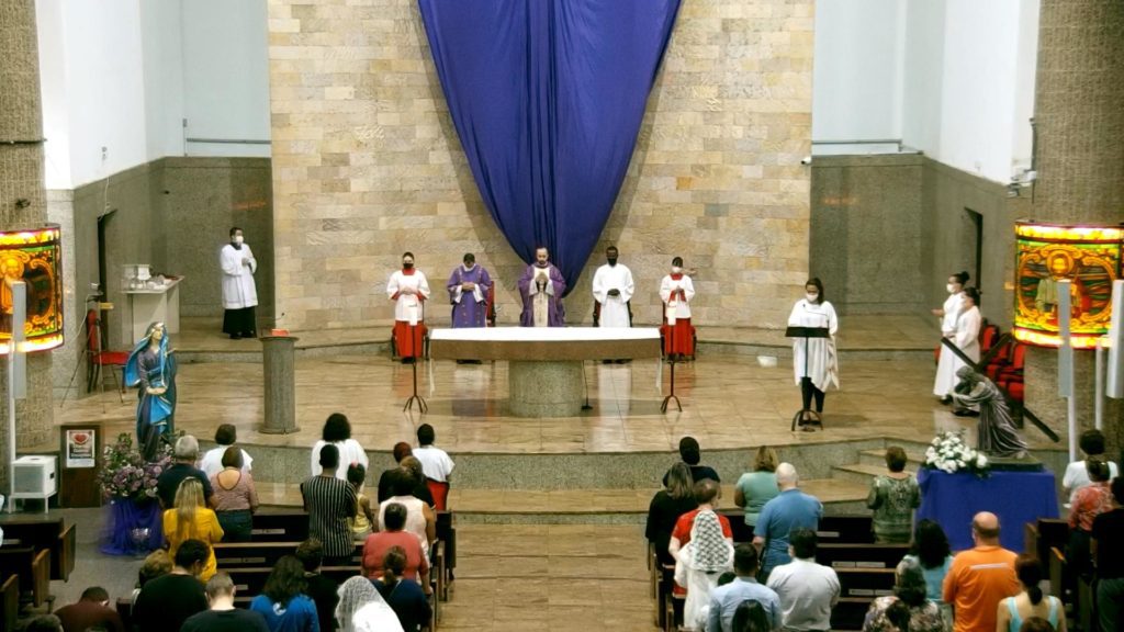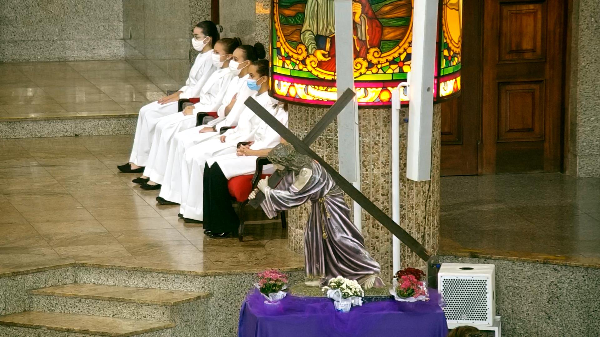 Missa com pregação sobre o encontro entre Nossa Senhora das Dores e Nosso Senhor dos Passos: 19h30, igreja nova (WebTV, Web Rádio), presidida pelo Pe. Rarden Luis Reis Pedrosa,scj, que acolheu os fiéis, lembrando a cena da Mãe, Nossa Senhora das Dores, e o seu Filho, Nosso Senhor dos Passos, que se encontraram no caminho do Calvário.