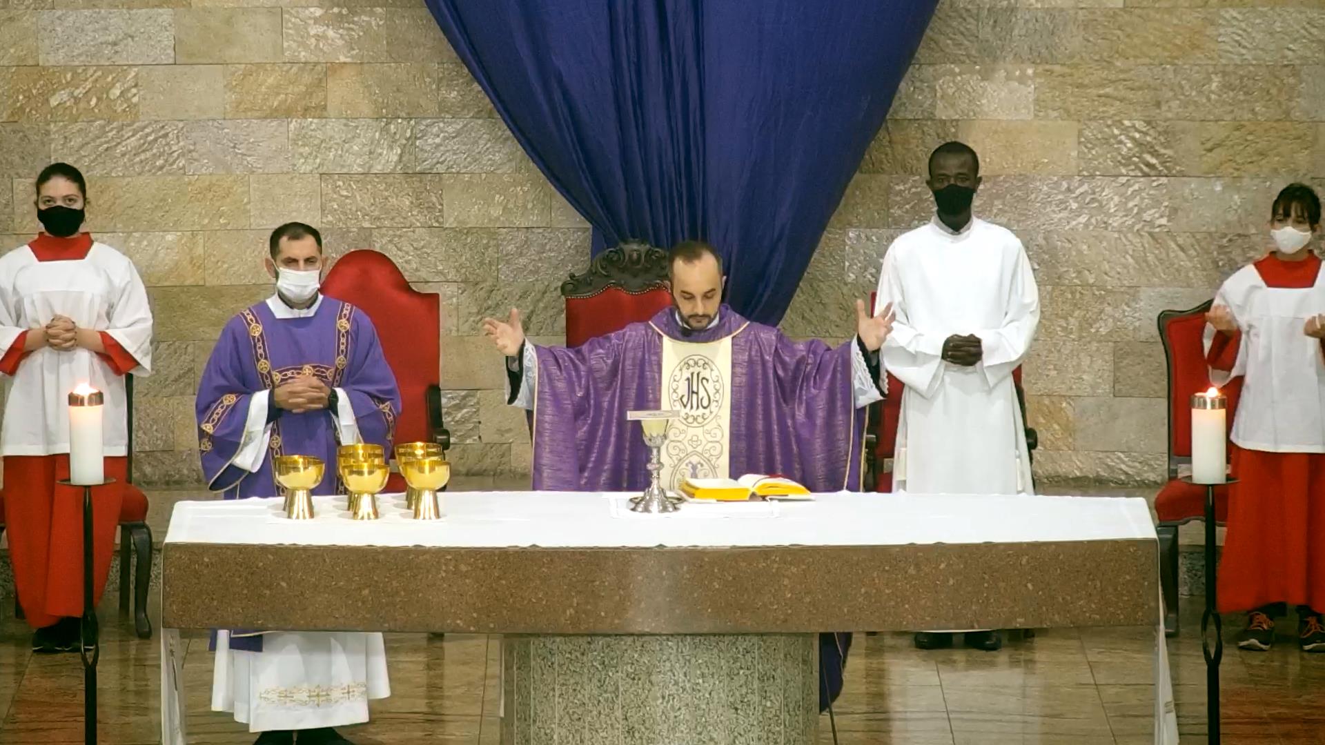 Às 19h30 da Terça-feira Santa, Pe. Cleiton Guimarães dos Santos,scj, presidiu a Missa com pregação sobre Nossa Senhora das Dores, na igreja nova (WebTV, WebRádio). Pe. Cleiton iniciou incensando a imagem de Nossa Senhora das Dores e colocou nas intenções as dores de Maria e nossas dores, além de todas as mães que sofrem, e a paz na Ucrânia. Disse que Maria é o grande sinal de graça para a humanidade: “Pelo sim de Maria vem o Salvador, pelo sim de Maria compreendemos as nossas próprias dores e sofrimentos”.