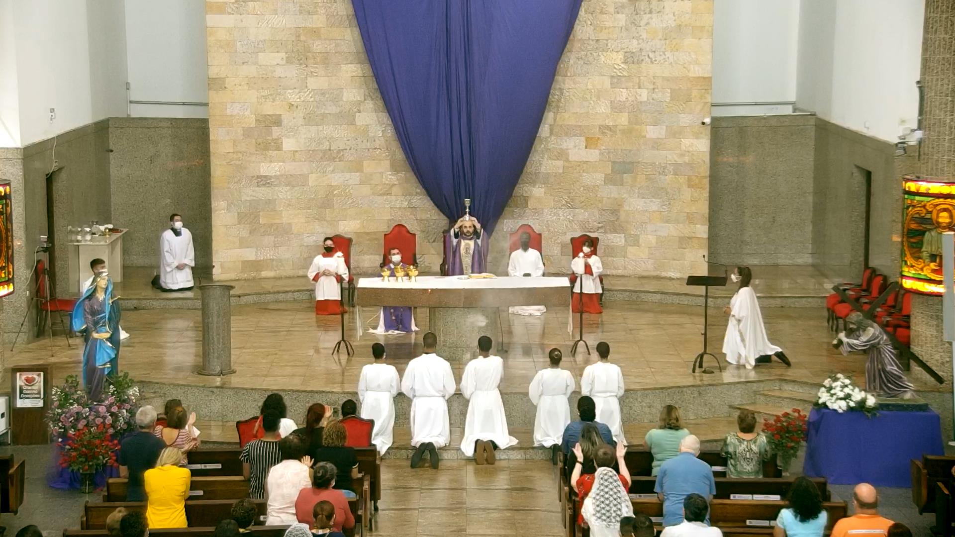 Esta Quinta-feira Santa foi marcada pela volta das vias-sacras rezadas na igreja antiga, às 7h, 9h, 12h, 15h e 17h (as duas últimas transmitidas pela WebTV e Web Rádio). A única celebração do dia foi a Missa Vespertina da Ceia do Senhor, às 19h30, na igreja nova, transmitida pela WebTV e Web Rádio, presidida pelo pároco e reitor, Pe. Daniel Aparecido de Campos,scj. Concelebram Pe. Guilherme, Pe. Alcides, Pe. Reginaldo, Pe. Aloísio, Pe. Oscar, Pe. Flávio, Pe. Cláudio e Diácono Vagner.