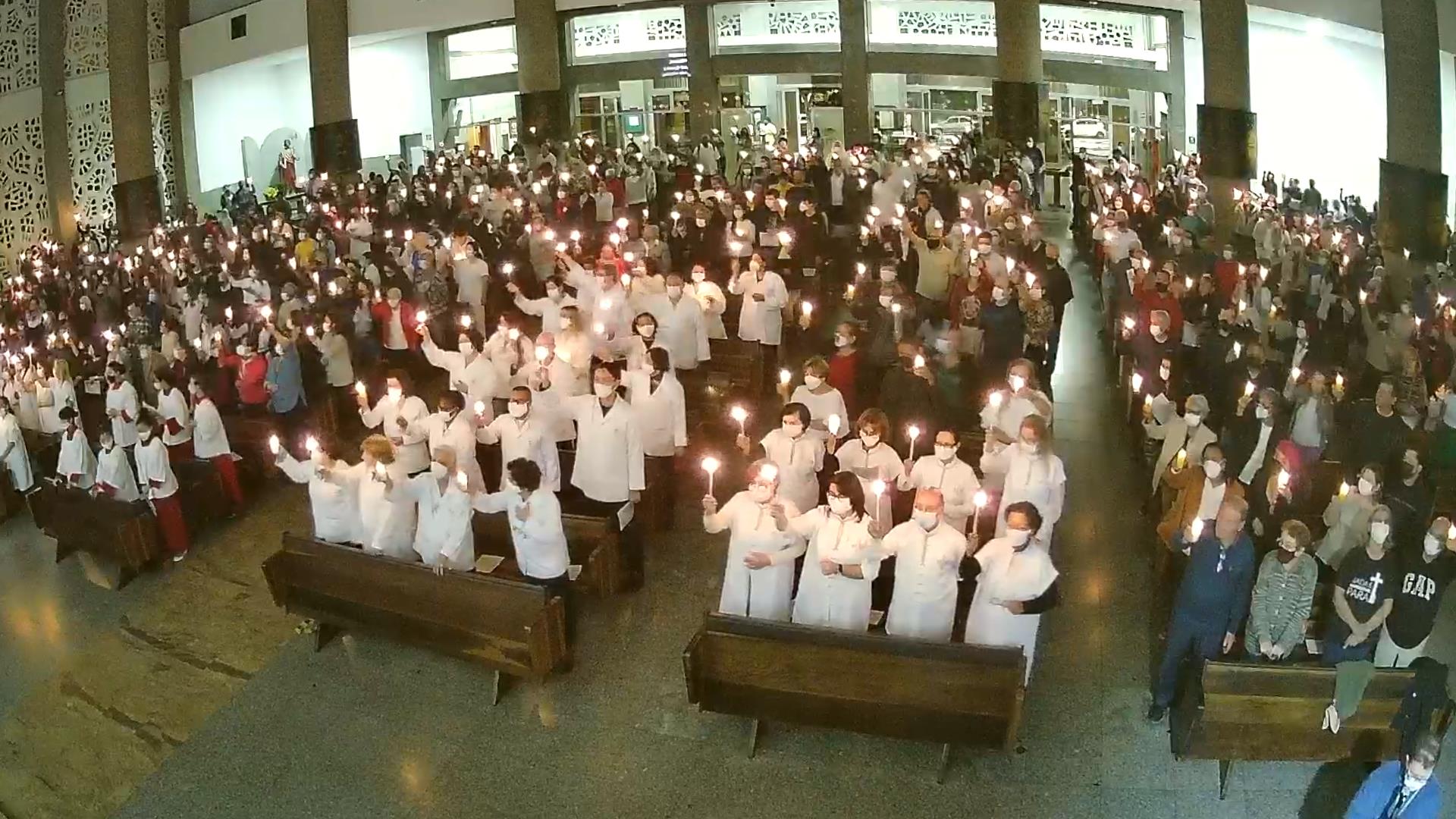 Solene Vigília Pascal da Ressurreição do Senhor: às 19h30, na igreja nova (única Missa do dia) – (WebTV e WebRádio), presidida pelo Pe. Daniel Aparecido de Campos,scj e concelebrada por Pe. Flávio, Pe. Reginaldo, Pe. Oscar, Pe. Aloísio, Pe. Alcides e Pe. Guilherme. Após a bênção do fogo novo no lado de fora da igreja (hall da igreja nova) e entrada do Círio Pascal pelo corredor central, foi proclamada a Páscoa, pelo Pe. Flávio Aparecido Alves,scj.