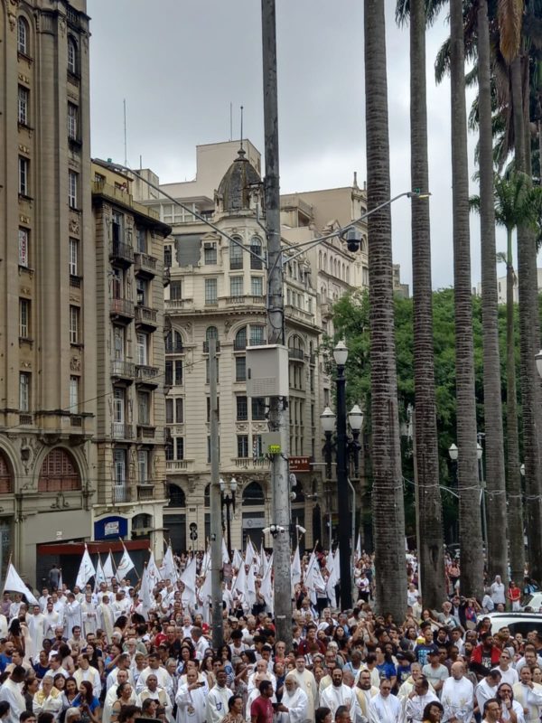 Todos caminharam juntos, em peregrinação, até a Catedral da Sé: Bispos de todas as Regiões Episcopais, Padres de todas as Paróquias da Arquidiocese de São Paulo, religiosos, religiosas e inúmeros fiéis leigos e leigas de diversas Pastorais, Movimentos e serviços. À frente da grandiosa procissão, haviam bandeiras com o logo do Jubileu Ordinário da Igreja e doze homens carregando uma Cruz, simbolizando as doze Paróquias designadas para acolher as Peregrinações na Arquidiocese em 2025.
