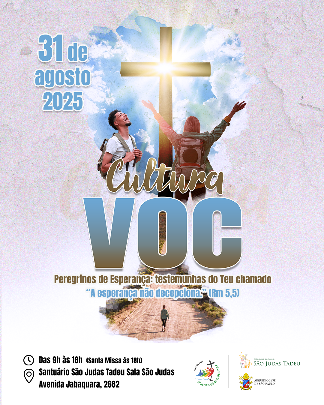 A quarta edição do Cultura Voc está se aproximando! O evento, que reúne diversas congregações, grupos e comunidades da Igreja, será realizado no dia 31 de agosto de 2025, das 9h às 18h, no Santuário São Judas Tadeu, em São Paulo – SP. Será um dia especial de interação, música, louvor e oração, aberto a toda a comunidade.