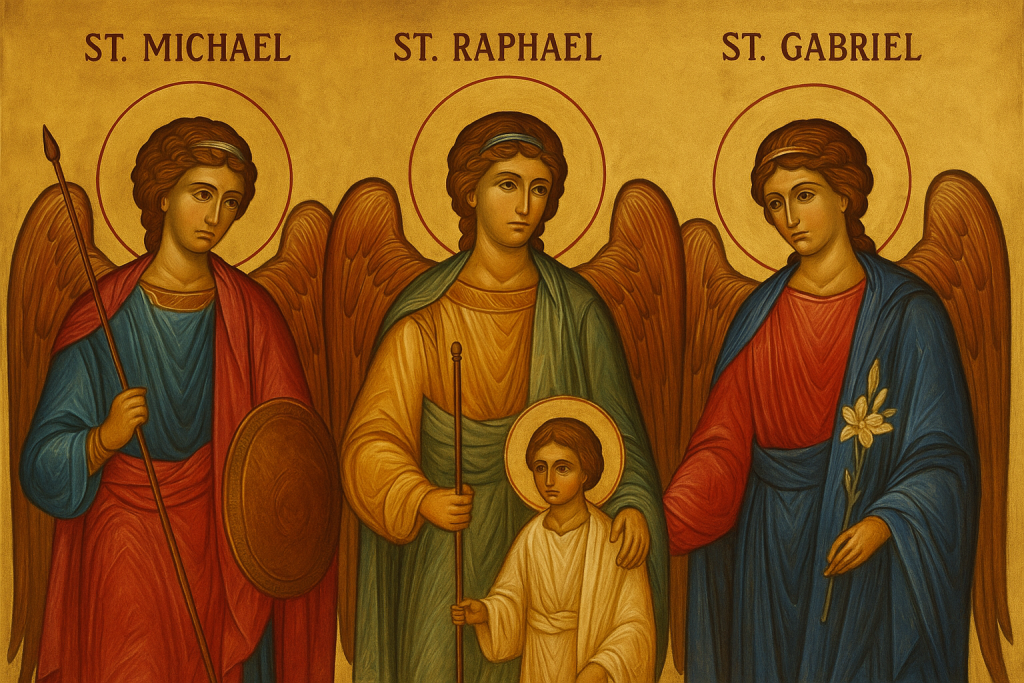 ¹ No próximo dia 29 de setembro nossa Igreja celebra a festa dos Arcanjos São Miguel, São Gabriel e São Rafael. Miguel venceu o demônio; Gabriel anunciou a Boa Nova; e Rafael é o guia por um caminho tranquilo e seguro. Em nossa vocação de serviço e glória a Deus, os três arcanjos estão sempre conosco, assim como estiveram na história da salvação.