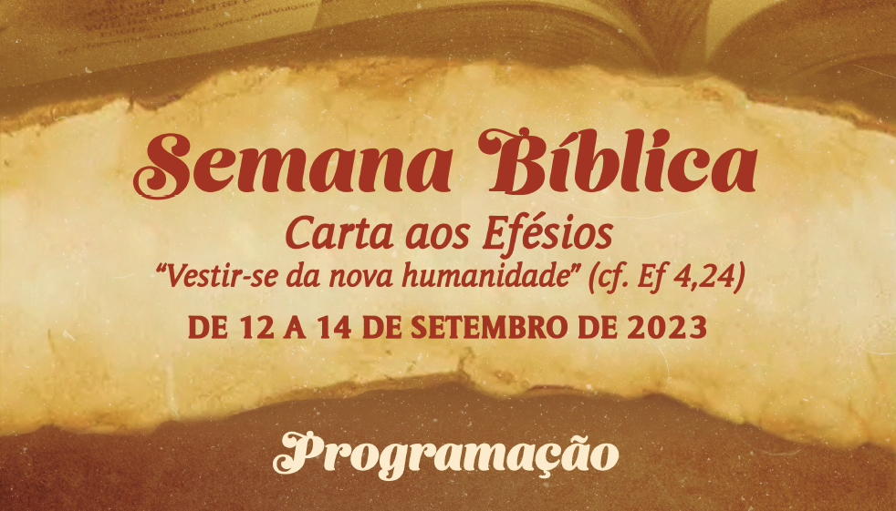 A Igreja celebra em setembro o mês da Bíblia, tempo propício para o estudo da Palavra de Deus. Em 2023, o livro bíblico escolhido é a Carta aos Efésios com a seguinte inspiração: “Vestir-se da nova humanidade” (cf. Ef 4, 24). Para ajudar na reflexão e aprofundamento deste tema, será realizado no Santuário, pelo segundo ano consecutivo a Semana Bíblica, nos dias 12, 13 e 14 de setembro de forma presencial (vagas limitadas).