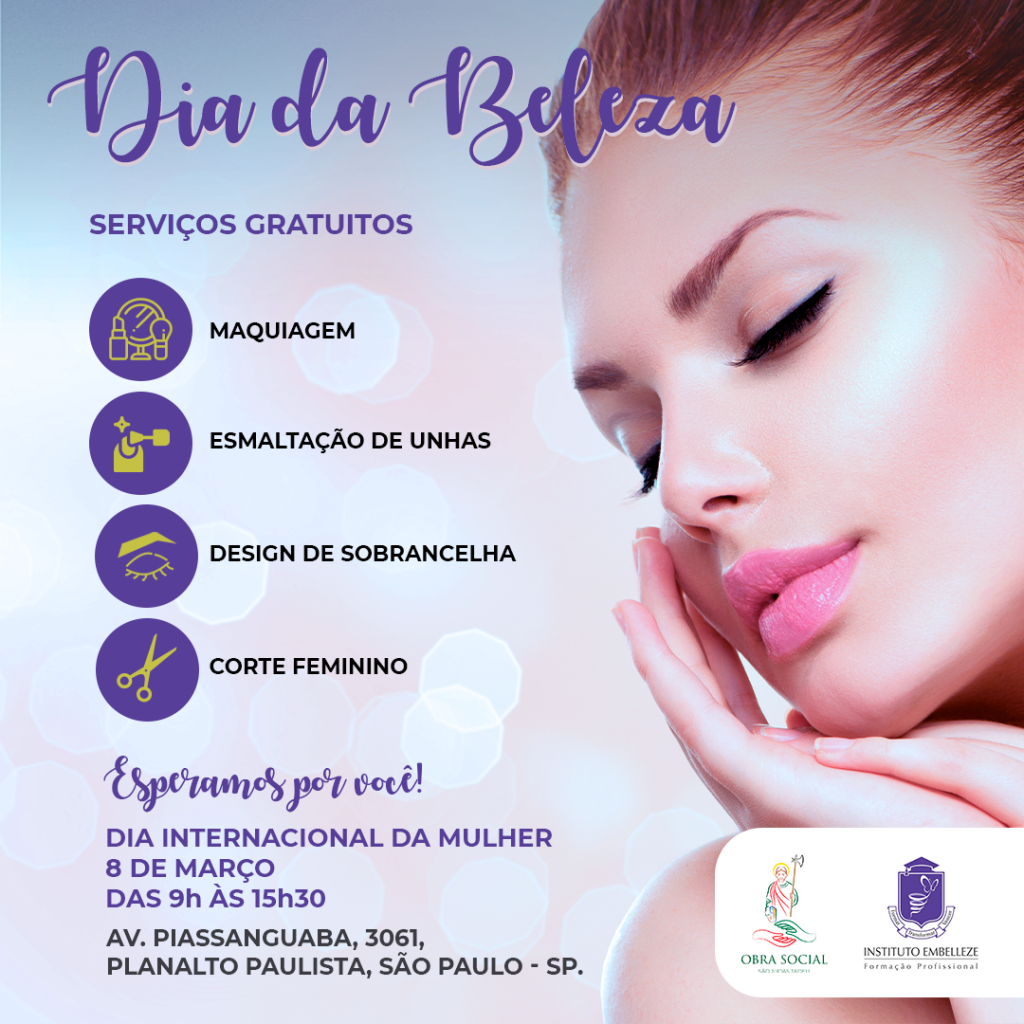 Para Celebrar o Dia Internacional da Mulher a Obra Social São Judas Tadeu em parceria com o Instituto Embelleze (unidade Jabaquara), realizará o Dia da Beleza com diversos serviços gratuitos destinados ao público feminino. Esperamos por você!