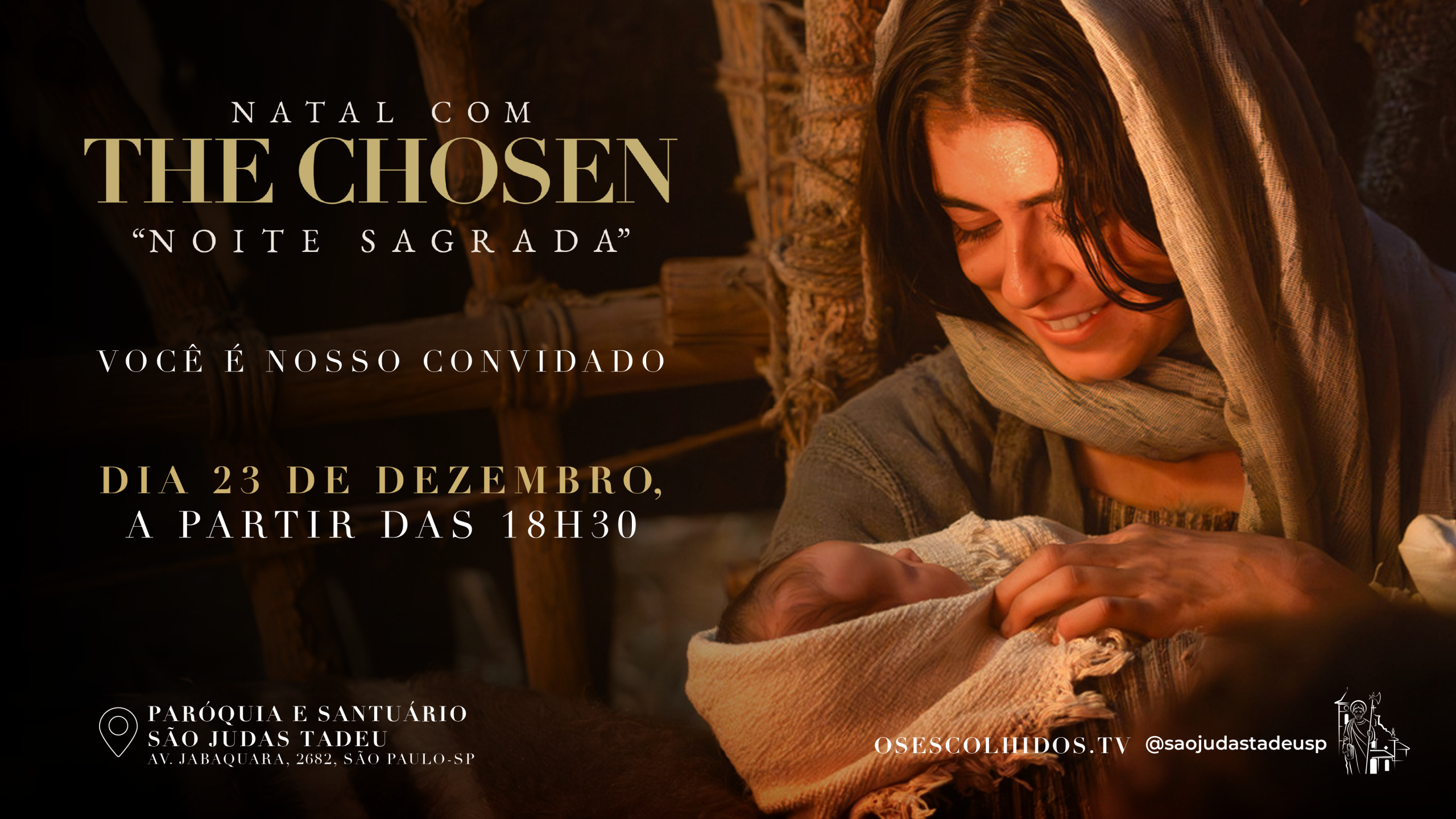No dia 23 de dezembro realizaremos a exibição do espisódio especial de natal “Noite Sagrada” da famosa série The Chosen. O episódio será exibido por volta das 18h30 no Santuário São Judas Tadeu localizado na Av. Jabaquara, 2682, São Paulo-SP. O evento encerrará o último dia da Novena de Natal prevista para iniciar às 18h na igreja antiga.