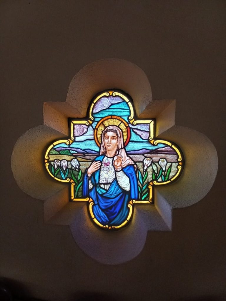 Esses vitrais foram confeccionados pela Casa Conrado e pagos com as doações dos primeiros devotos de São Judas Tadeu, que ajudaram a construir essa comunidade.