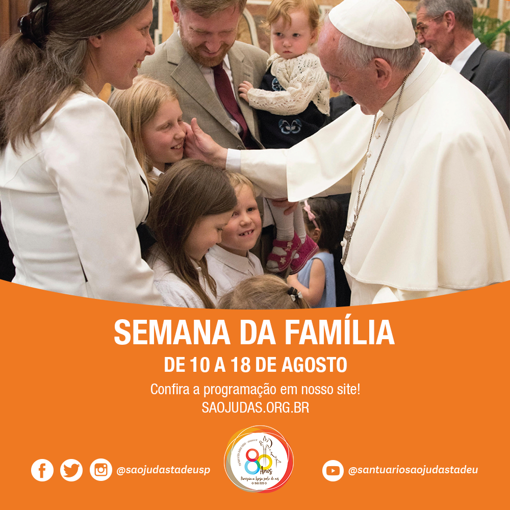 - “A Família como vai?” Oração e Reflexão com Pe. Cláudio Weber,scj e Testemunho de Fé pela Família de Carlos F. da Silva, Maria Aparecida e o filho Vinicius, às 19h30 na Sala São Judas.