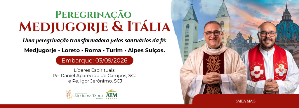 Participe da Peregrinação para Medjugorje e Norte da Itália, com passeio de trem pela Suíça, organizada pela ATM Travel e acompanhada pelos padres da Paróquia e Santuário São Judas Tadeu: Pe. Daniel Aparecido de Campos, scj, e Pe. Igor Jerônimo, scj, de 03 a 09 de setembro de 2026.